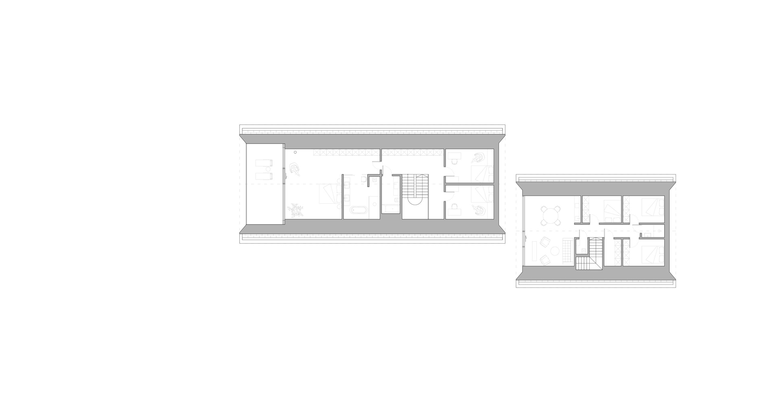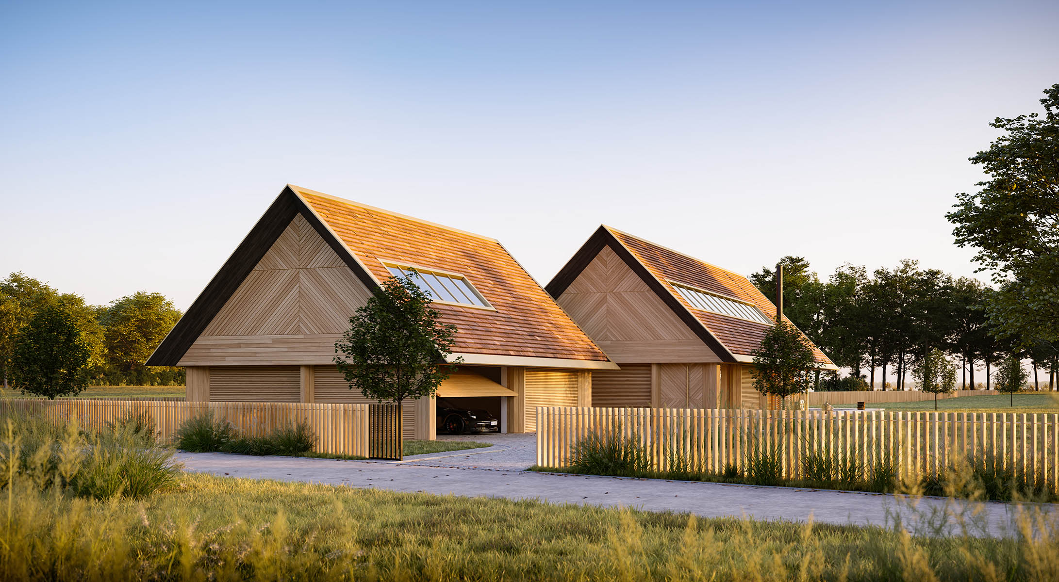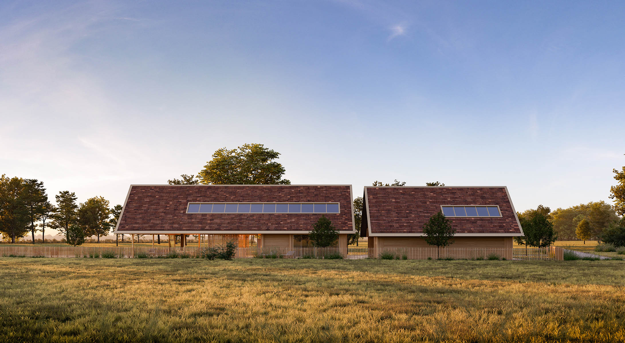 Poprzez dialog z tradycją zaprojektowano dom w nawiązaniu do zastanych elementów architektury regionu takich jak dach pokryty dachówką ceramiczną o ceglastej barwie, materiał naturalnego drewna na elewacjach oraz budynek na rzucie wydłużonego prostokąta o charakterystycznych proporcjach stodoły. Elementy te stały się punktem wyjściowym w poszukiwaniu rozwiązań kubaturowych i architektonicznych.